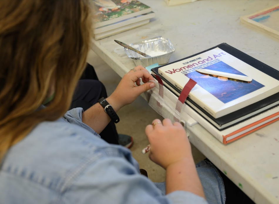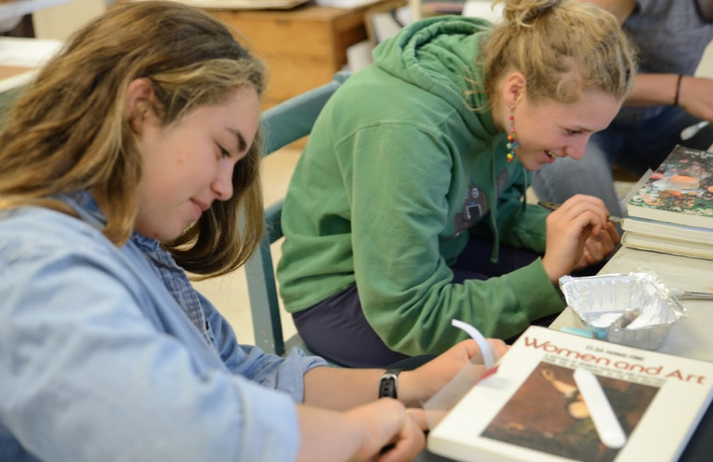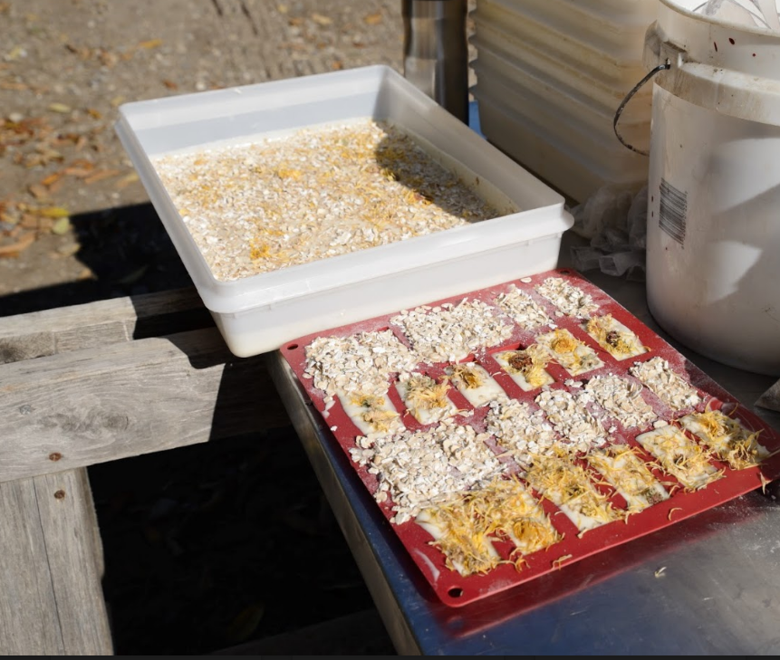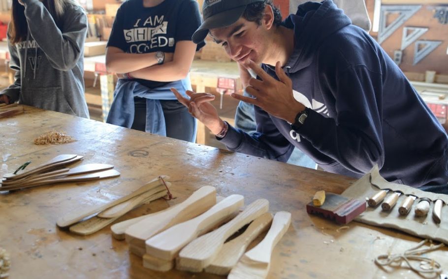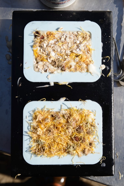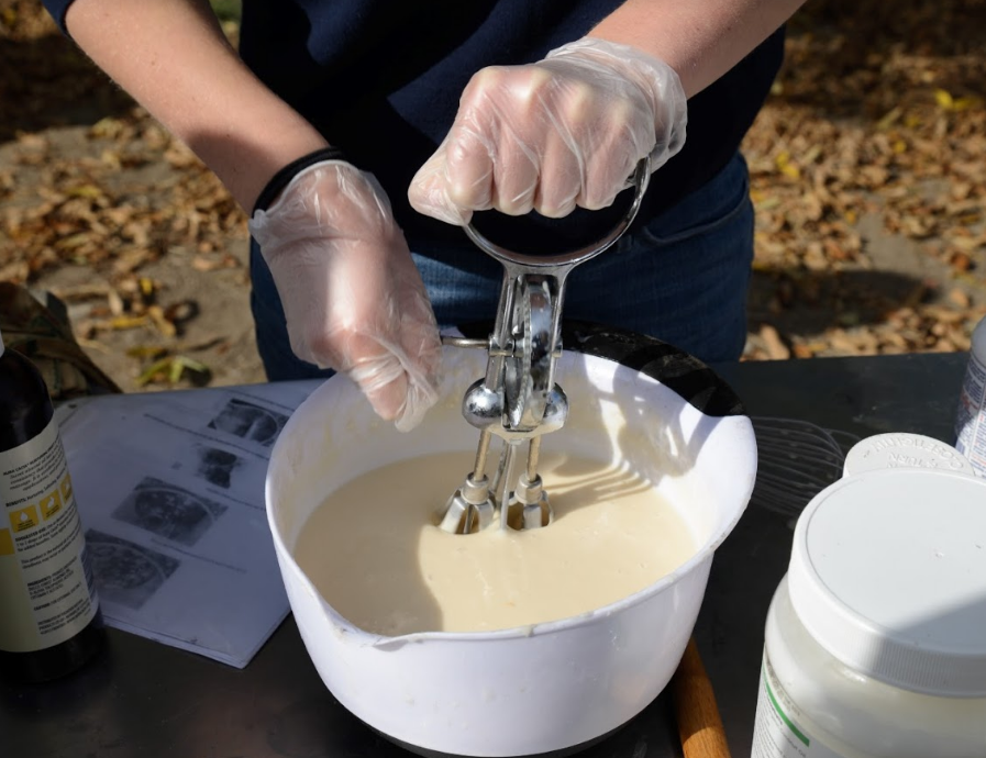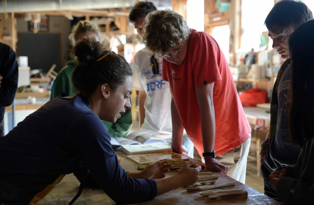 Meanwhile, the semester students dove into a morning of homesteading skills a few Saturdays back. While some students dyed farm wool with a range of wild and cultivated plant materials and engaged in other fiber arts (including weaving and felting), others made cheese, kimchi, and sauerkraut; carved spoons; learned basic embroidery; made books; and mixed up homemade soap with farm pig lard as a base.