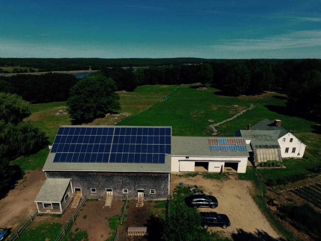 Early solar installations on campus buildings, including the farm barn, helped lay the groundwork for Chewonki’s continued investment in renewable energy.