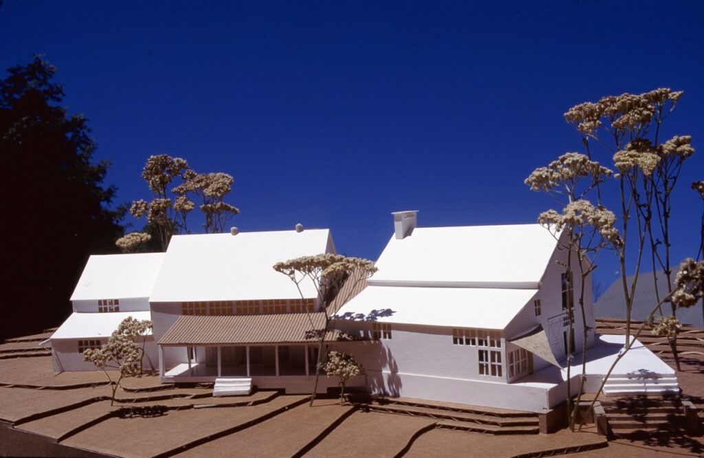 Architectural model of the Center for Environmental Education, designed by Theodore + Theodore. The building reflects an early integration of energy-conscious design and flexible learning space.