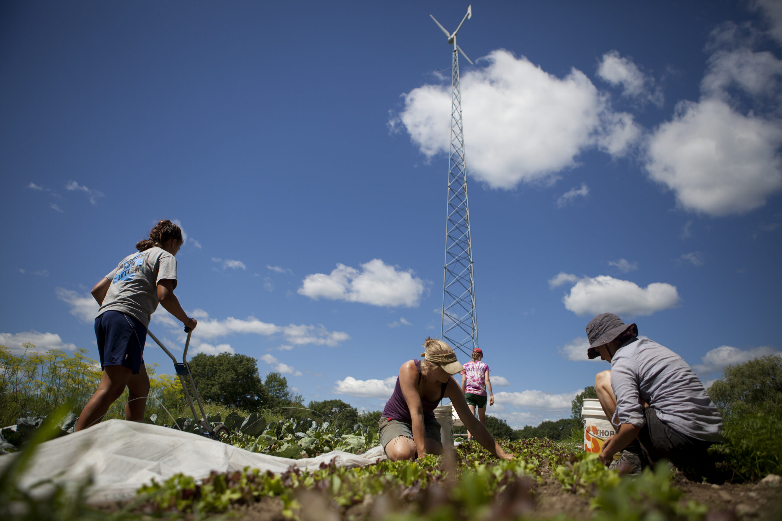 Chewonki also began exploring on-site electricity generation. A wind turbine rose above the farm, and early solar panels appeared on buildings. These systems made energy visible and easier to understand.